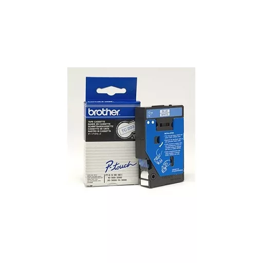 **TC- 203 öntapadós laminált címkeszalag.** * Szalag típusa: Standard laminált * Szalag szélessége: 12 mm * Szalag hossza: 7,7 m * Szalag színe: Fehér * Felirat színe: Kék