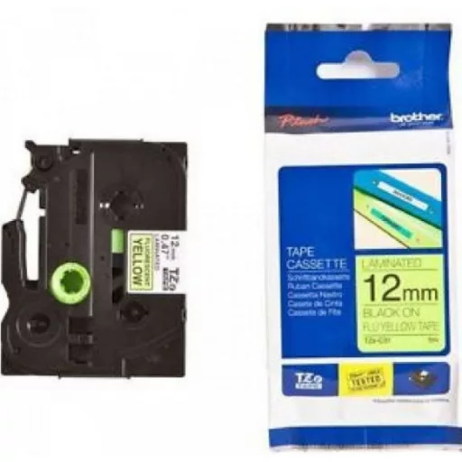 **TZe -C31 öntapadós laminált címkeszalag tartós feliratok nyomtatásához.** * Szalag típusa: Fluoreszkáló laminált * Szalag szélessége: 12 mm * Szalag hossza: 5 m * Szalag színe: Sárga * Felirat színe: Fekete