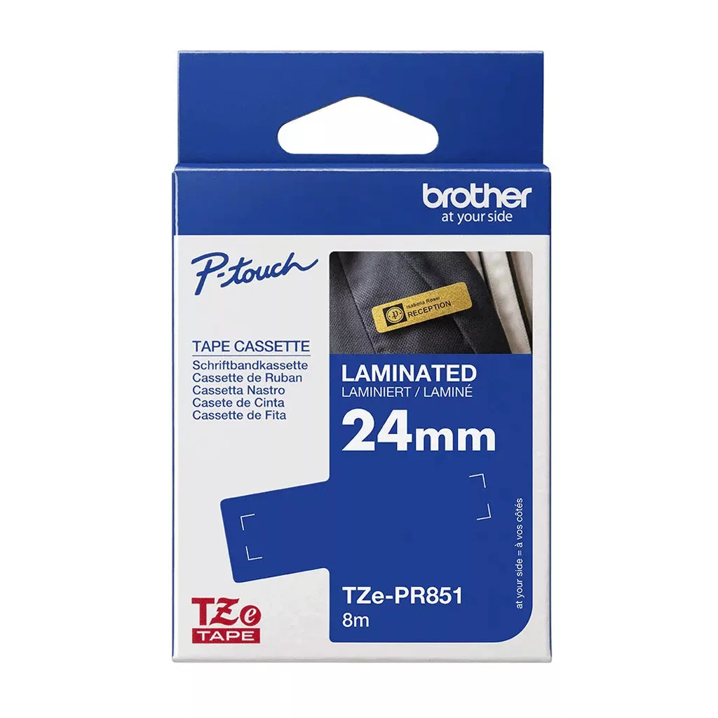 TZe-PR851 prémium címkeszalag. Csillogó arany színű háttere prémium hangulatot kölcsönöz a nyomatnak. * Szalag szélessége: 24 mm * Szalag hossza: 8 m * Szalag színe: Csillogó arany * Felirat színe: Fekete