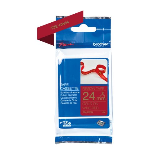 **TZe-RW54 Bordó selyem szalag arany színű feliratokhoz** * Szalag típusa: Selyem * Szalag szélessége: 24 mm * Szalag hossza: 4 m * Szalag színe: Bordó *Felirat színe: Arany