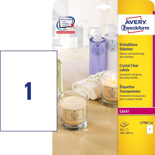 Címke mérete: 210 x 297 mm Doboz tartalma: 25 darab címke - 25 ív/doboz (1 címke / lap) Tökéletes megoldást nyújtanak az üveg, műanyag és fém tárgyak, valamint egyéb fényes felületek felcímkézésére. 25 átlátszó, poliészter címke 25 íven. A címkék olaj-, szennyeződés- és hőállóak (-20°C és +80°C között), cseppállóak és szakadásbiztosak. Tervezze meg és nyomtassa ki címkéit gyorsan és egyszerűen - ingyenes szoftverünkért és sablonjainkért látogasson el a http://www.avery.hu/templates-software/ weboldalra vagy használja a Microsoft® Office csomagokba beépített sablonjainkat! Kifejezetten lézer és színes lézer nyomtatókhoz fejlesztve.Katalóguskód: 25319