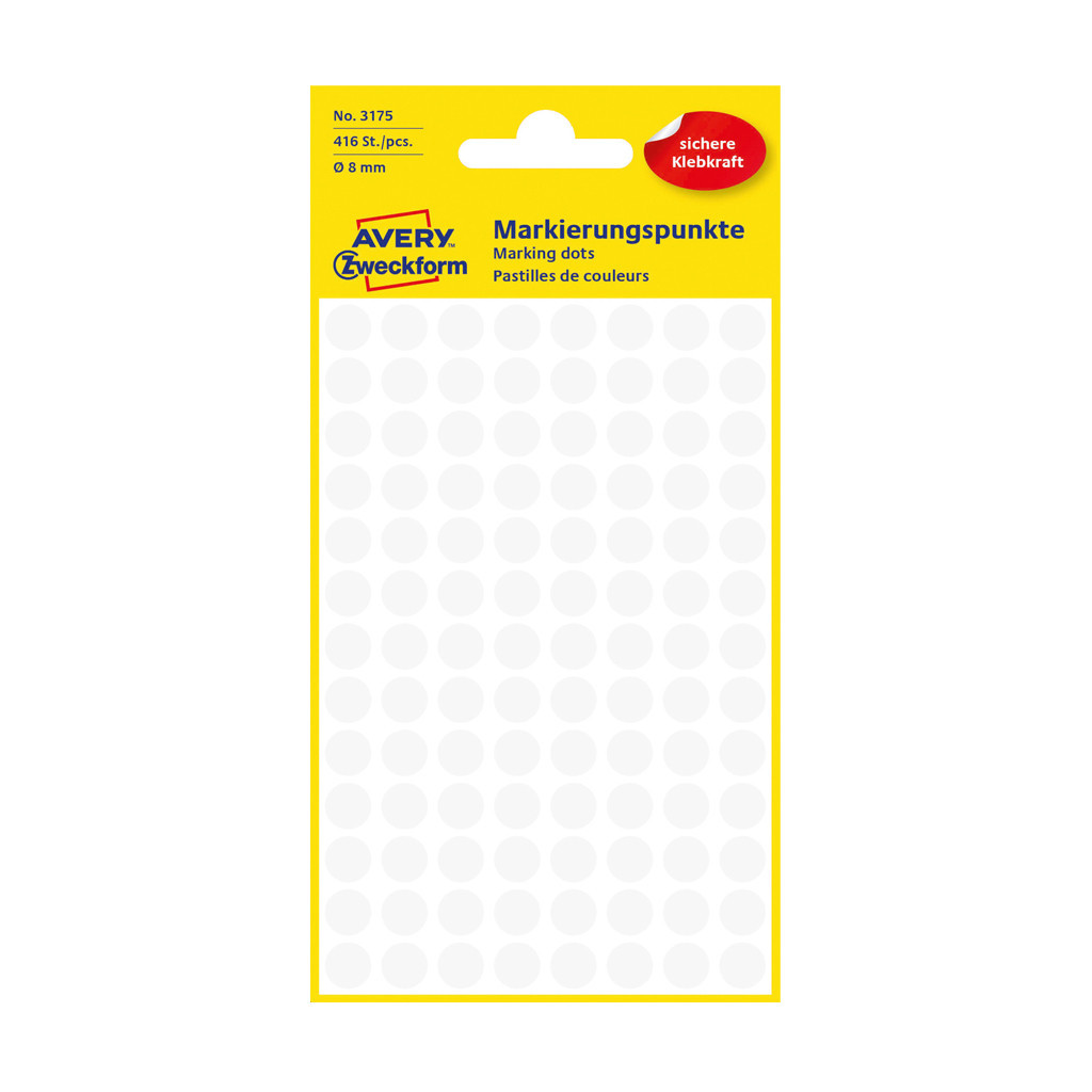 Címke mérete: 8 mm  Csomag tartalma: 416 jelölőpont/csomag  Az AVERY ZWECKFORM jelölőpontok tökéletesek jelölésre, rendszerezésre, tervezésre, iratrendezésre. Katalóguskód: 25358