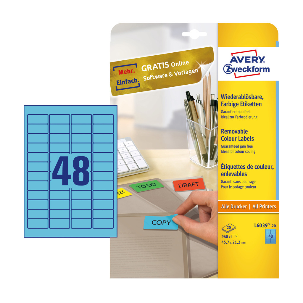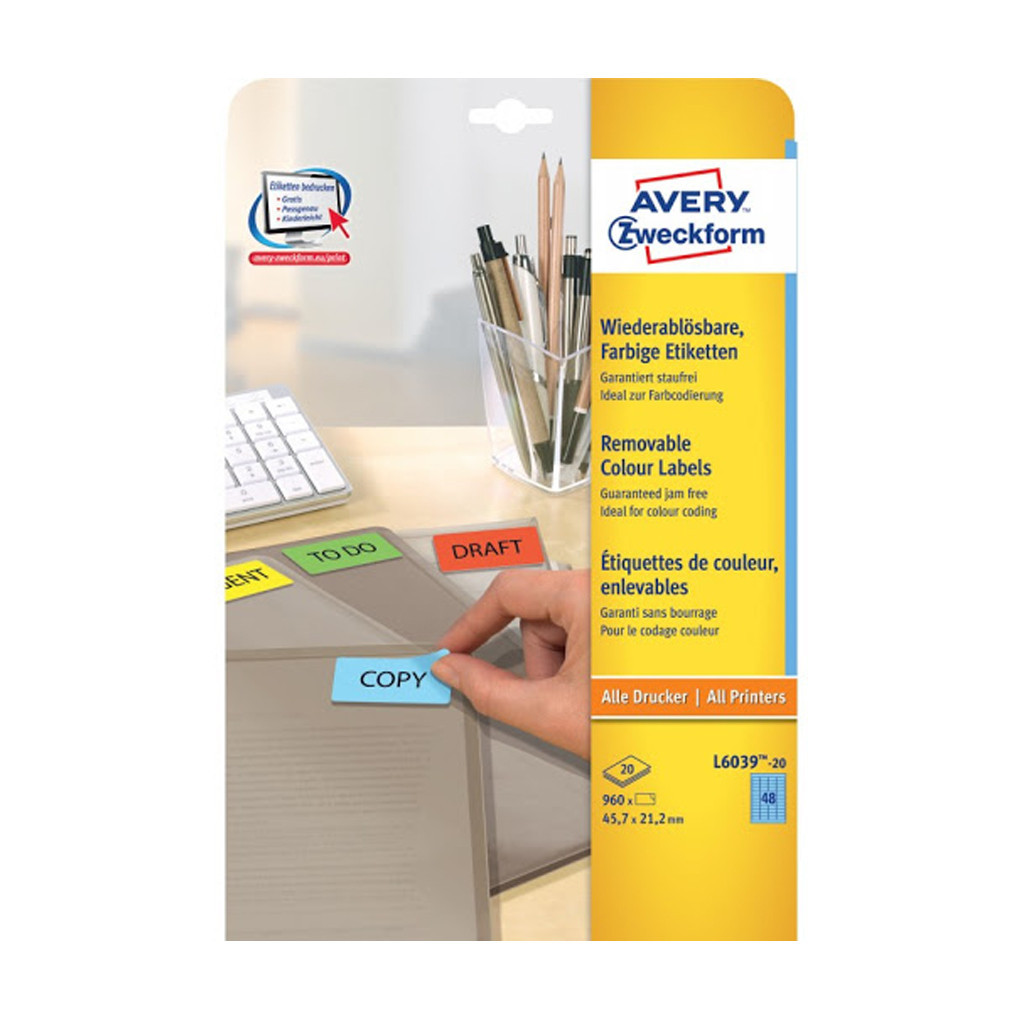 Címke mérete: 45,7 x 21,2 mm  Doboz tartalma: 960 darab címke - 20 ív/doboz (48 címke/ lap)  Tökéletesen alkalmas például arra, hogy színkódok segítségével rendszerezzünk dokumentumokat, termékeket. Biztos lehet az elakadásmentes nyomtatásban, hiszen ragasztómaradvány nem kerül a nyomtatóba. Tervezze meg és nyomtassa ki címkéit gyorsan és egyszerűen - ingyenes szoftverünkért és sablonjainkért látogasson el a http://www.avery.hu/templates-software/ weboldalra vagy használja a Microsoft® Office csomagokba beépített sablonjainkat! Optimalizált minőség tintasugaras, lézer és színes lézer nyomtatókhoz, fénymásolókhoz.  Katalóguskód: 25288