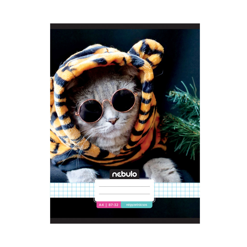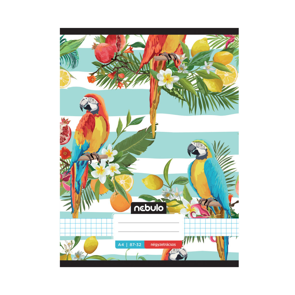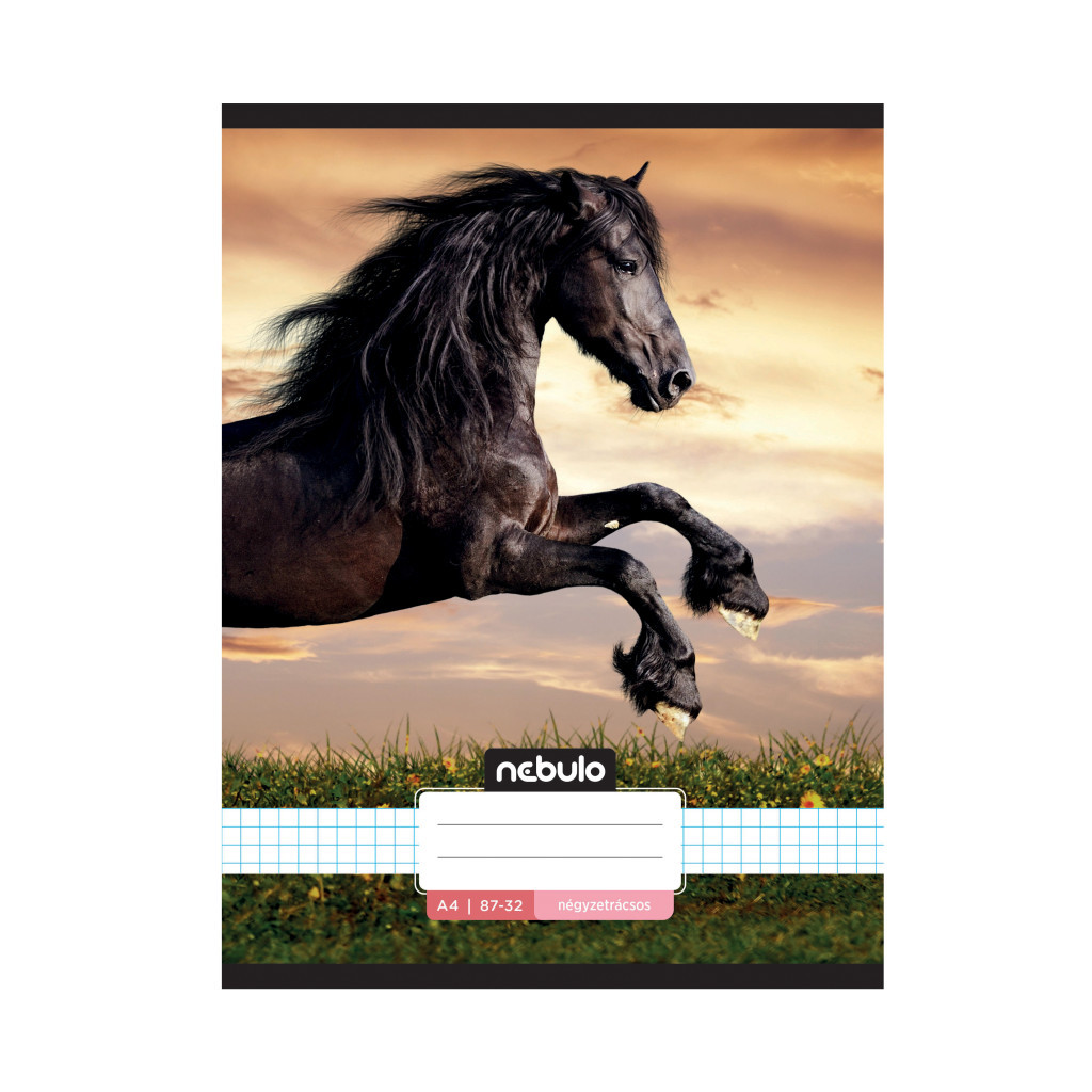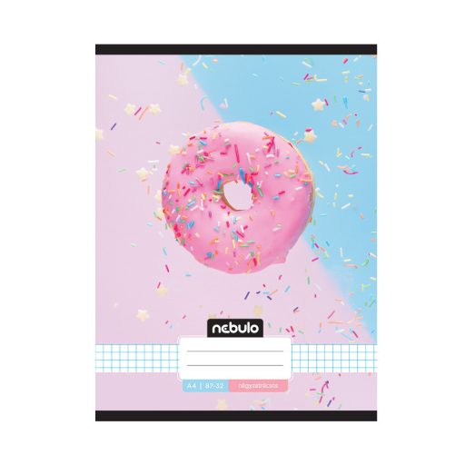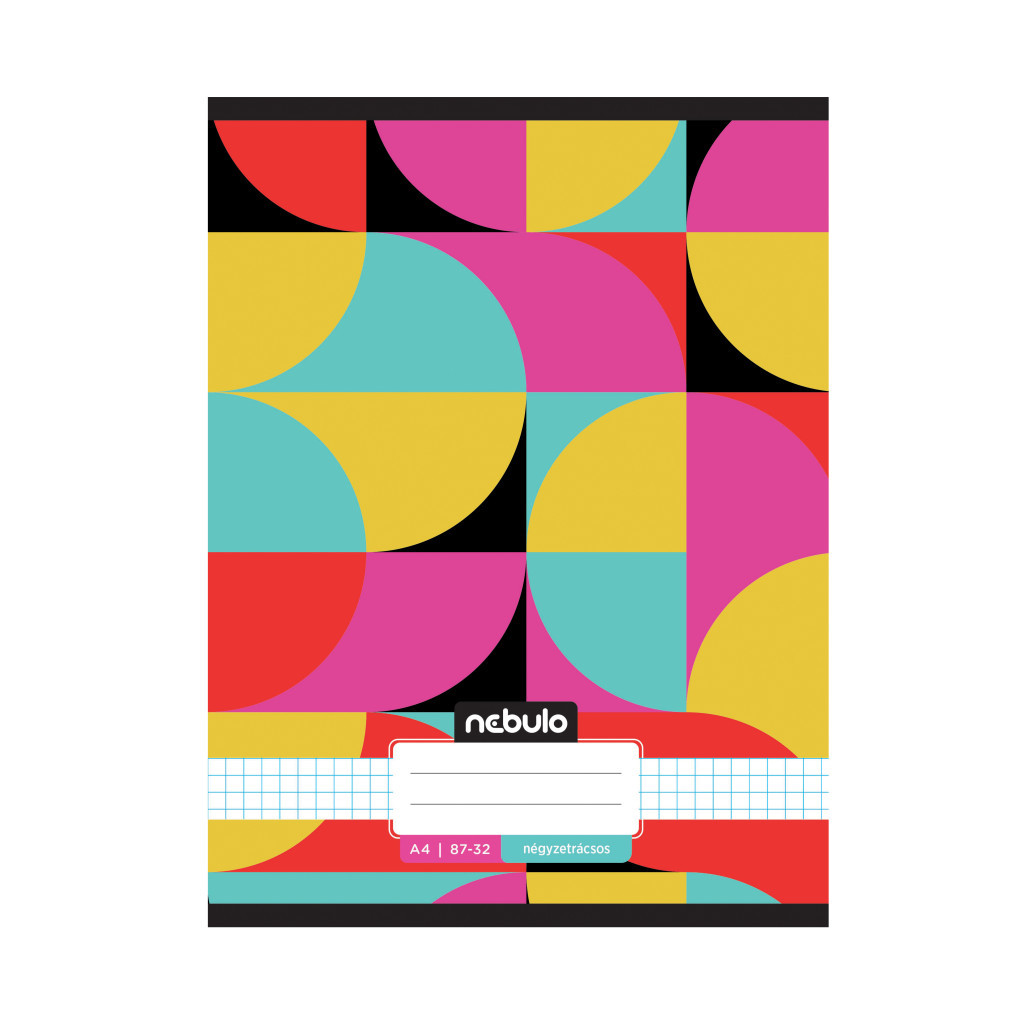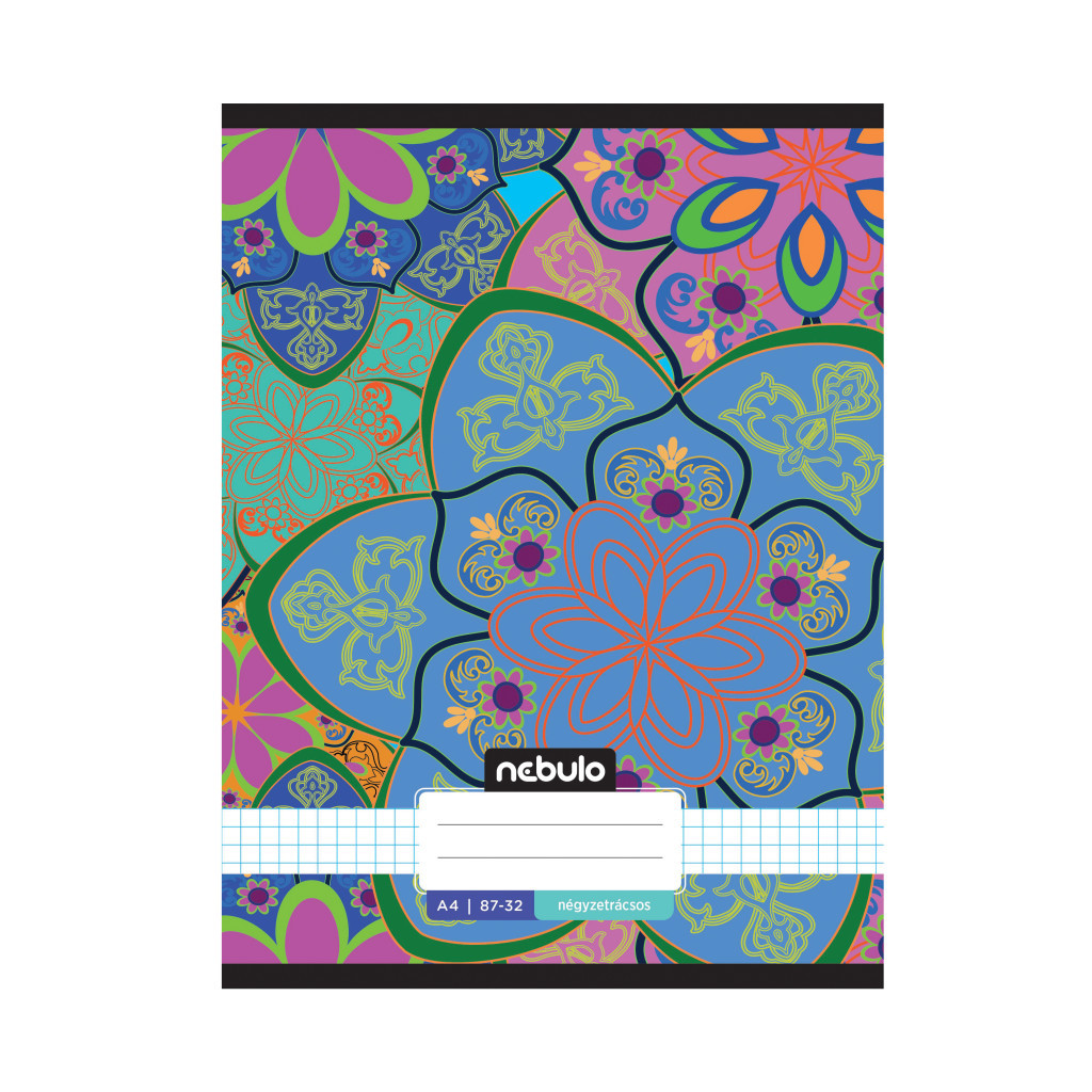 A/4-es tűzött iskolai négyzetrácsos füzet, 32 lapos (87-32). 12 db füzet (12 különböző minta) van egy csomagban. 70 g-os füzetlapok és 200 g-os műnyomó borító fényes fóliával.