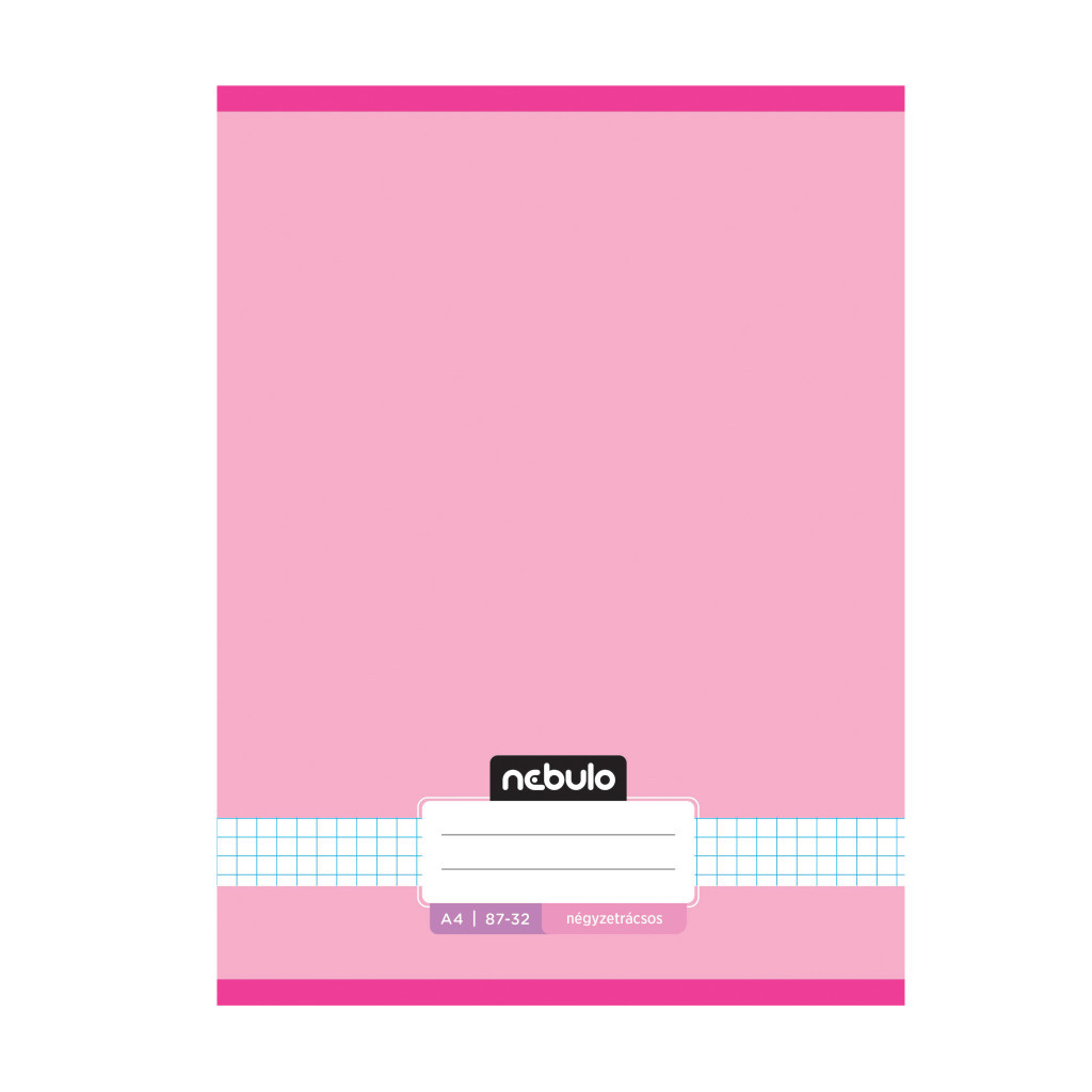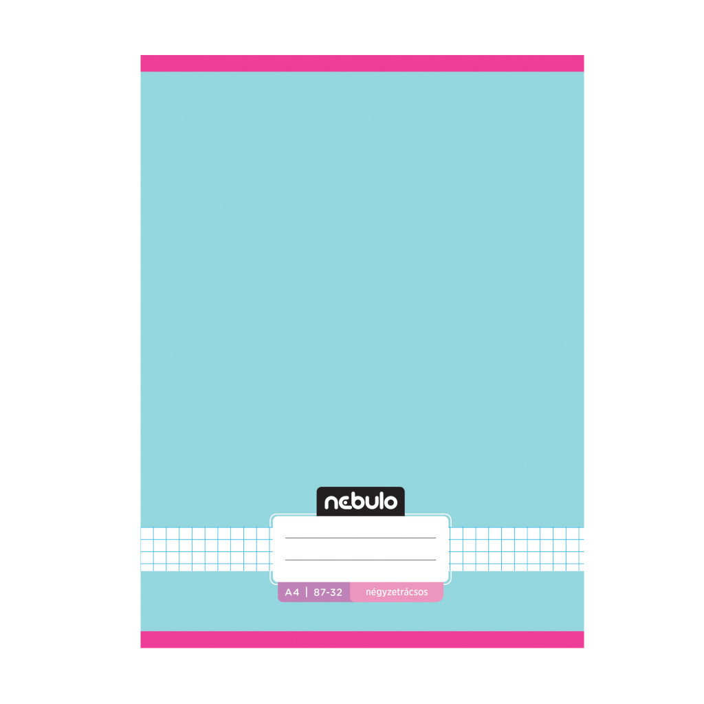 A/4-es tűzött iskolai négyzetrácsos füzet, 32 lapos (81-32). 12 db füzet (6 különböző minta: Monochrome=egyszínű, Gradient=színátmentes, 2db / minta) van egy csomagban. 70 g-os füzetlapok és 200 g-os műnyomó borító fényes fóliával.