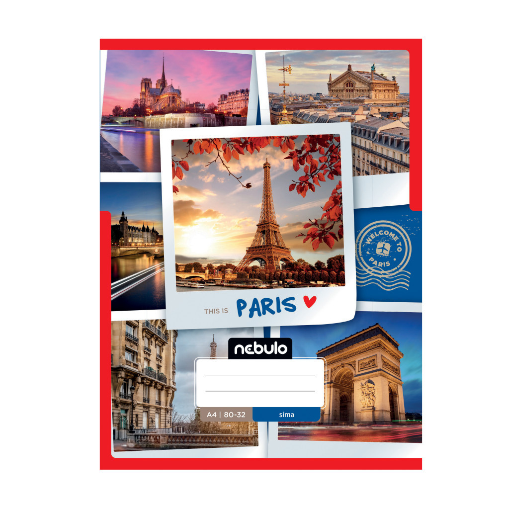A/4-es tűzött iskolai sima füzet, 32 lapos (80-32). 12 db füzet (6 különböző országos/városos minta, azaz 2db/minta) van egy csomagban. 70 g-os füzetlapok és 200 g-os műnyomó borító fényes fóliával.