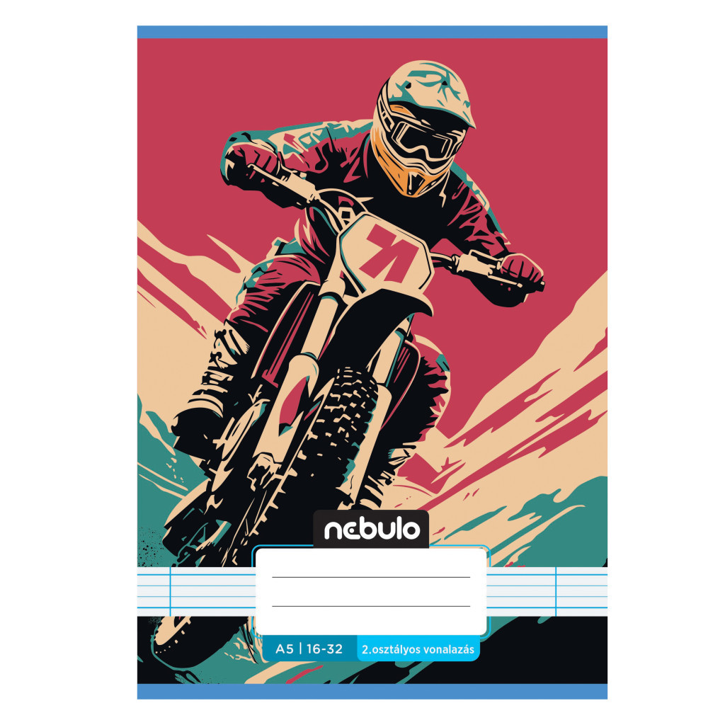 A/5-ös tűzött iskolai füzet 2. osztályos vonalazással, 32 lapos (16-32). 16 db füzet (8 különböző vagány minta, azaz 2db/minta) van egy csomagban. 70 g-os füzetlapok és 200 g-os műnyomó borító fényes fóliával.