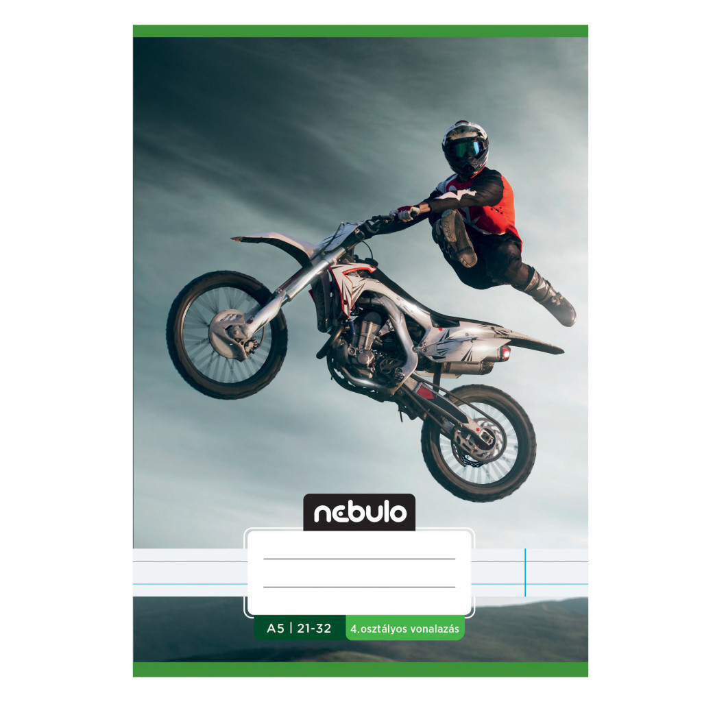 A/5-ös tűzött iskolai füzet 4. osztályos vonalazással, 32 lapos (21-32). 16 db füzet (8 különböző vagány minta, azaz 2db/minta) van egy csomagban. 70 g-os füzetlapok és 200 g-os műnyomó borító fényes fóliával.