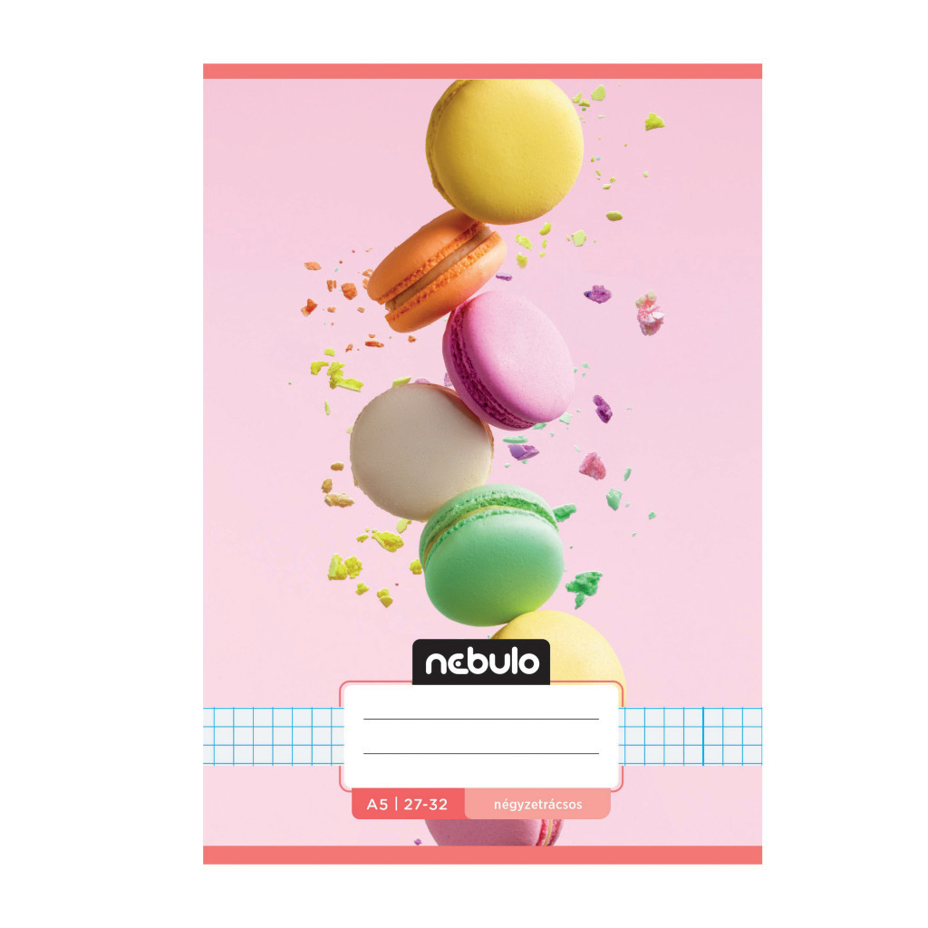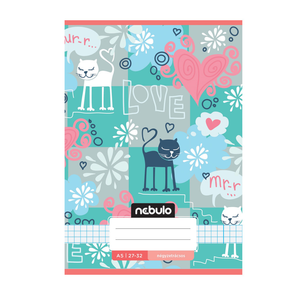 A/5-ös tűzött iskolai négyzetrácsos füzet, 32 lapos (27-32). 16 db füzet (8 különböző cuki minta, azaz 2db/minta) van egy csomagban. 70 g-os füzetlapok és 200 g-os műnyomó borító fényes fóliával.