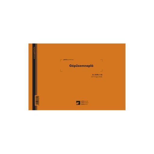 Gépüzemnapló Felhasználási terület: Gépi berendezések üzemeltetési körülményeit, a használat időtartamát rögzítő nyomtatvány. Használatát többek között a közúti gépjárművek, az egyes mezőgazdasági, erdészeti és halászati erőgépek üzemanyag- és kenőanyag-fogyasztásának igazolás nélkül elszámolható mértékéről szóló 60/1992. (IV. 1.) Korm. rendelet szabályozza. 25x3 lapos tűzött tömb, A/4, fekvő, karton borítás, 70 gr-os önátírós (vegykezelt), perforált belívek, fehér alapon fekete nyomat. Katalóguskód: 35197