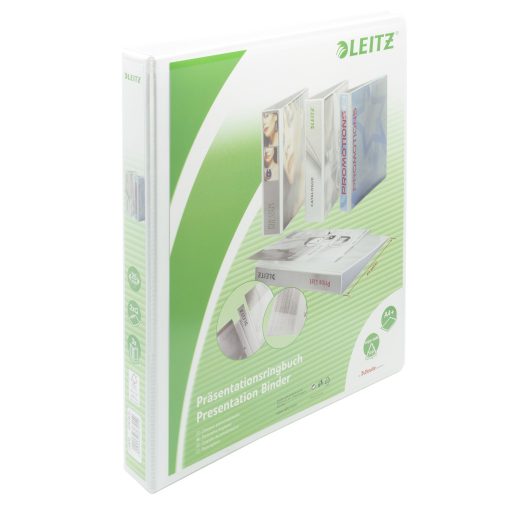 Panorámás gyűrűskönyv A4 Maxi méretben a széleskörű használat érdekében - lapokkal, tasakokkal és regiszterekkel is használható. Bőrhatású, dombornyomott, környezetbarát PP fólia borítás, mely mindkét oldalon ragasztott a széleken pedig hegesztett a buborékmentes, minőségi megjelenés érdekében. Az A4 Maxi méret tökéletesen illik a maxi méretű regiszterekhez és elválasztólapokhoz 3 külső zseb a megszemélyesítéshez, 3 belső zseb papírok tárolásához 25 mm átmérőjű, 2 "D" gyűrűs szerkezet 230 A4 lap kapacitás (80 g-os papír) FSC® minősített Katalóguskód: 35756
