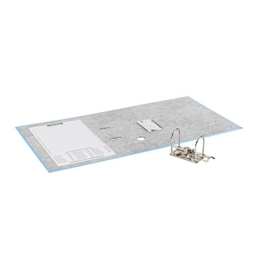Emelőkaros iratrendező általános használatra. Kívül PP, belül fehér karton borítással, kihúzólyukkal. Cserélhető gerinccímke a feliratozáshoz. Tárolókapacitás 500 lap (A4 80gr.). A terméket lapra szerelve szállítjuk, a mellékelt emelőkaros szerkezet bepattintása gyors és egyszerű, 5 másodperc alatt elvégezhető és iratrendezőnk máris használatra kész! Katalóguskód: 12071