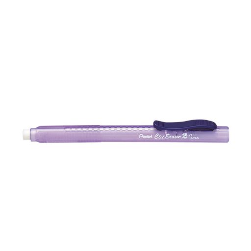 Tolóbetétes radír áttetsző, műanyag tollformájú testben. A radír műanyag klipsszel rendelkezik, melynek köszönhetően könnyen elhelyezhető. A termék négy színben kapható. Utántölthető.Katalóguskód: 27101