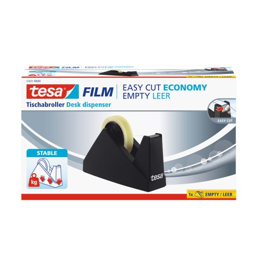 tesa® Easy Cut Economy asztali csomagolószalag vagy ragasztószalag adagoló ötvözi a klasszikus kialakítást és a bevált funkcionalitást Katalóguskód: 34338