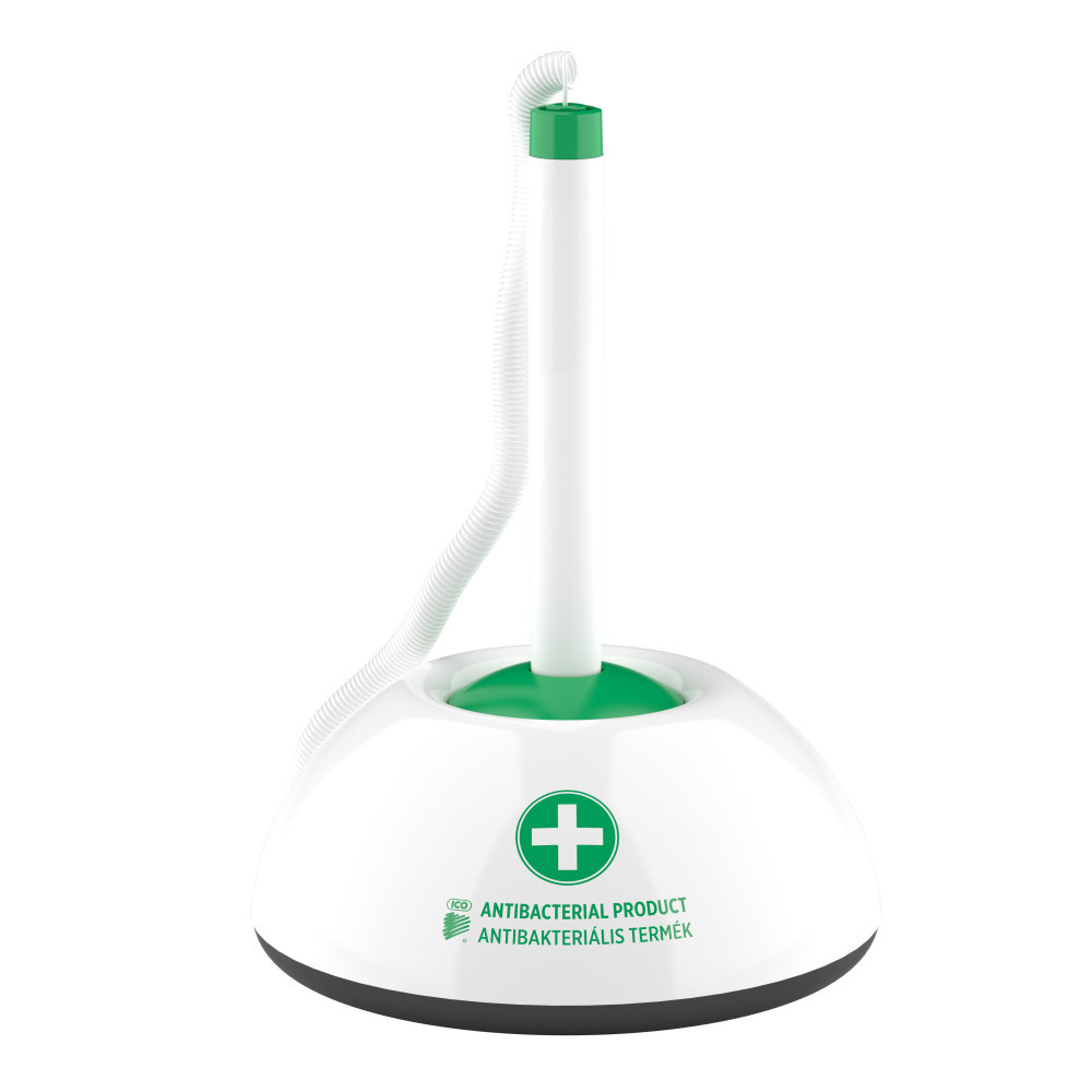 Antibakteriális ügyféltoll. A műanyag alkatrészek baktériumölő hatású ezüst-ionadalékkal készülnek. Cserélhető betét, csúszásgátlóval ellátott vagy ragasztássalrögzíthető talp. Vonalvastagság: 0,8 mm. Íráshossz: 2500 mm. Betét: X20. Katalóguskód: 1801